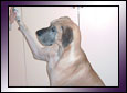 läpätään tassulla lyttyyn namia tavoitellessa.