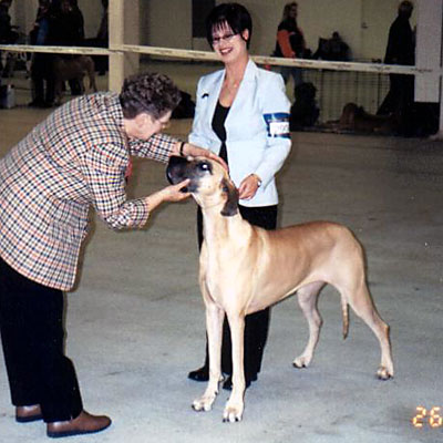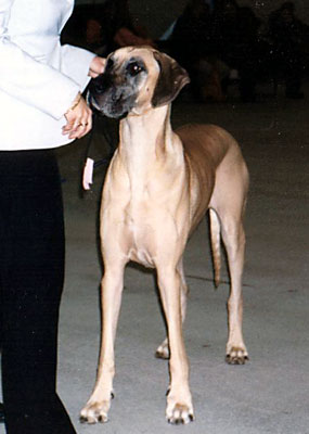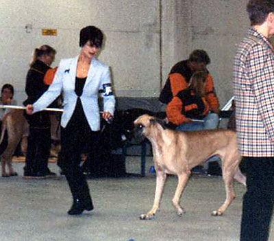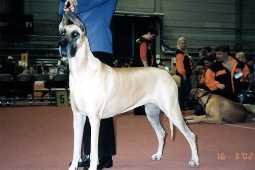 and arch of neck. Ears of good size. Nice bone. Nice rear.