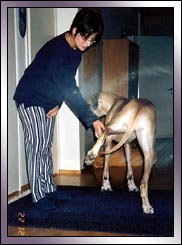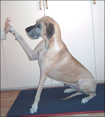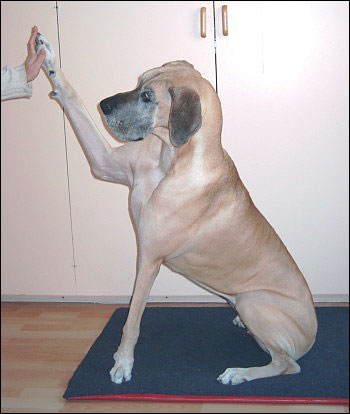 läpätään tassulla lyttyyn namia tavoitellessa.